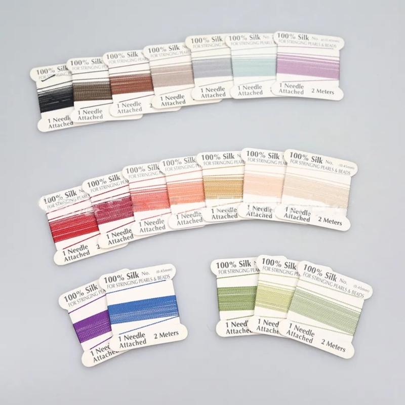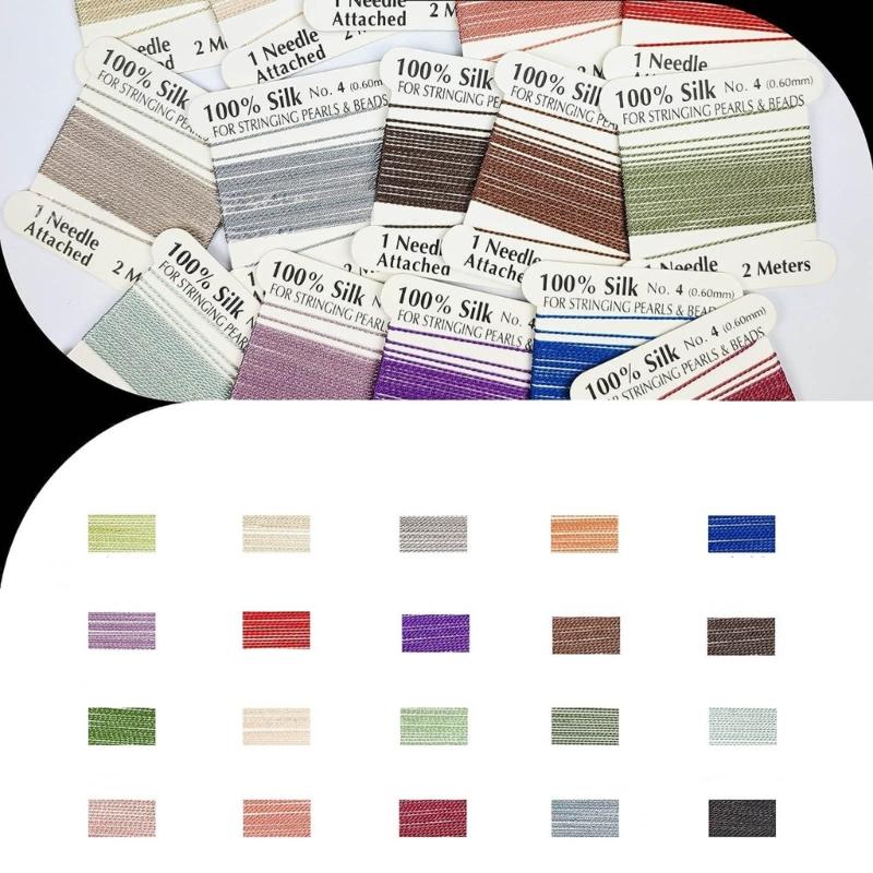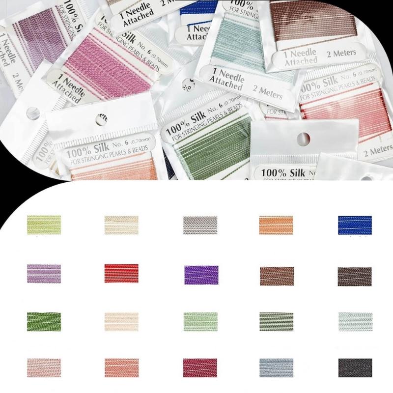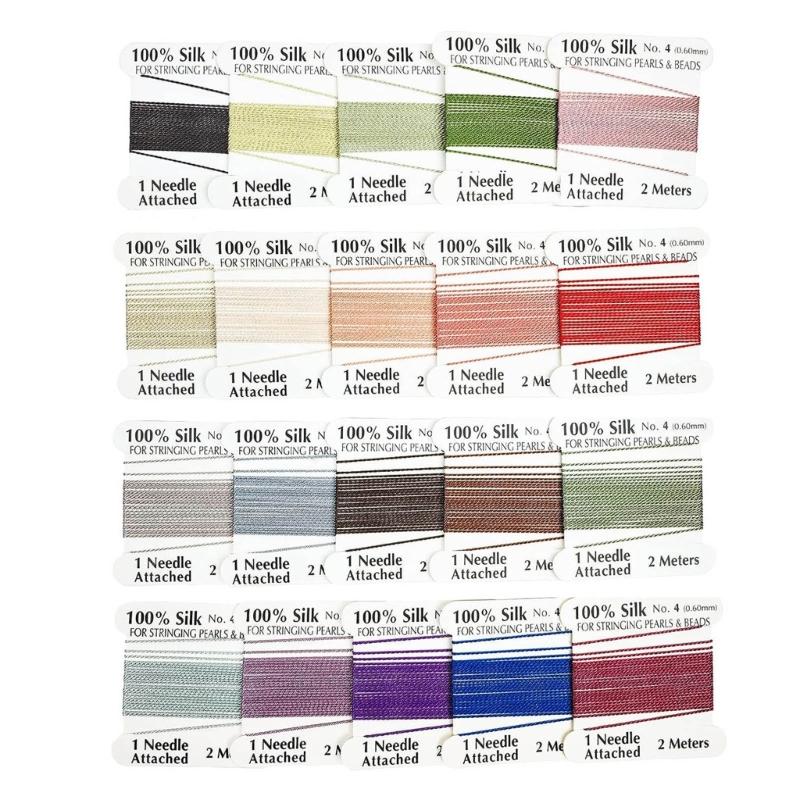 20 шт. 100% шелковый шнур для бисера, многоцветный, с иглой на конце, шелковый шнур для бисероплетения, плетеная нить 0,6 мм/0,7 мм