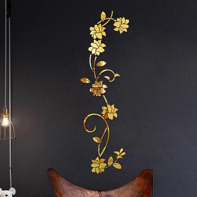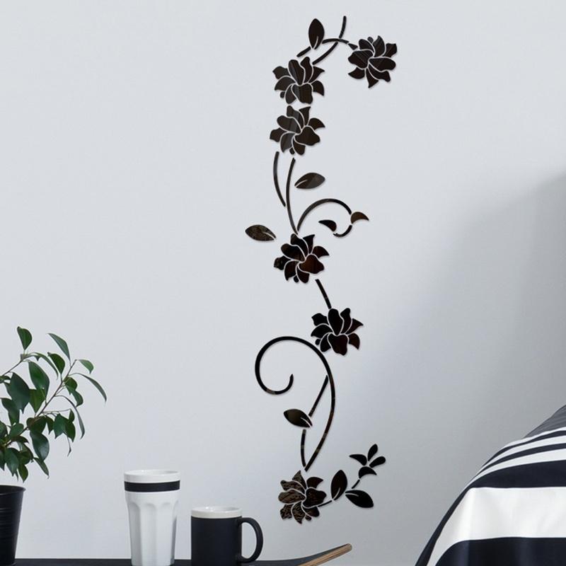 3D Diy Flower Shaped Acrylic Wall Decal Modern Classic Aesthetic Romantic Home Decoration Accessories (Black Gold Silver)