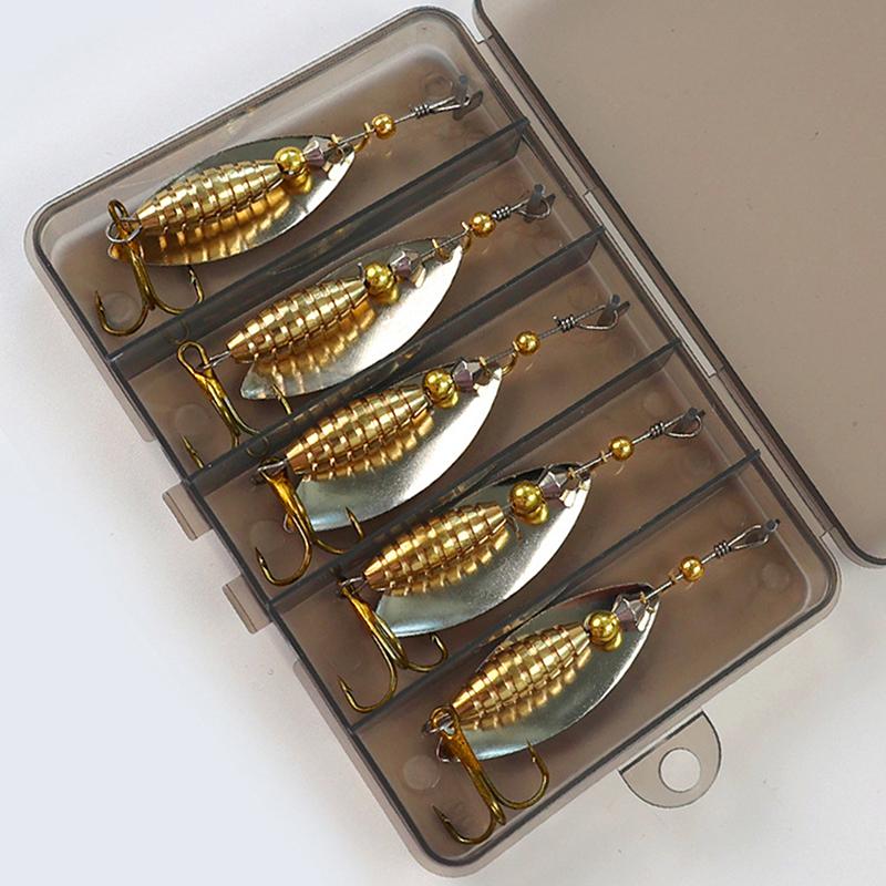 5/10 шт./коробка Блесна-вертушка Блестки с тройником Металлическая блесна Ложка Твердая рыболовная приманка с коробкой для рыболовных снастей Подарок на День отца