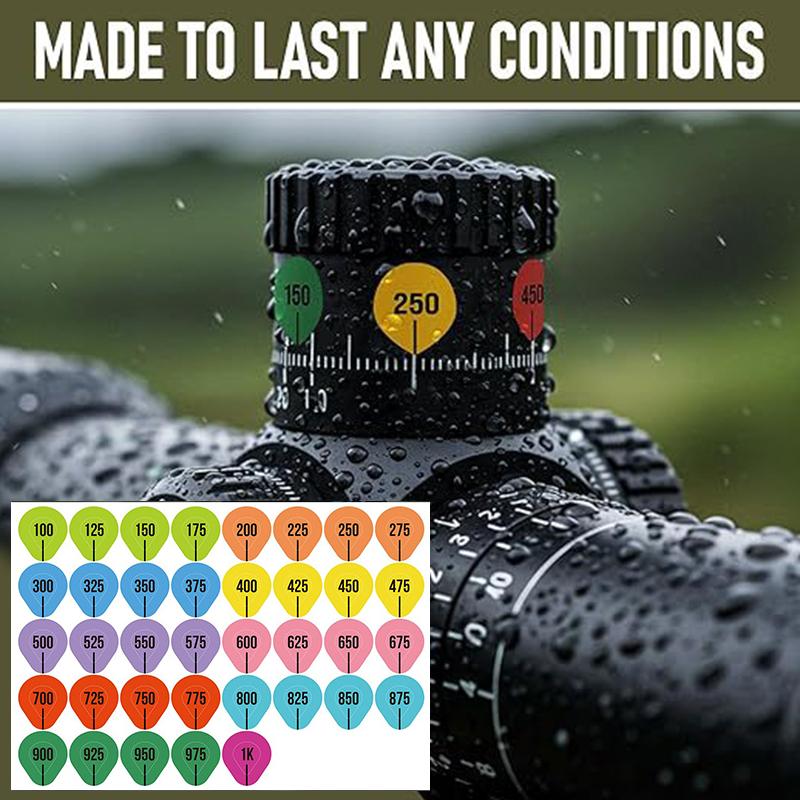 5,Повысьте эффективность поля:Сэкономьте критически важное время в поле, исключив ручные расчеты или возню с цифровыми устройствами.. Эти наклейки помогают стрелкам сохранять концентрацию и повышать точность — будь то охота, соревнования, тактическая подготовка или рекреационная стрельба по мишеням.. Легкий, незаменимый инструмент для каждого серьезного стрелка.