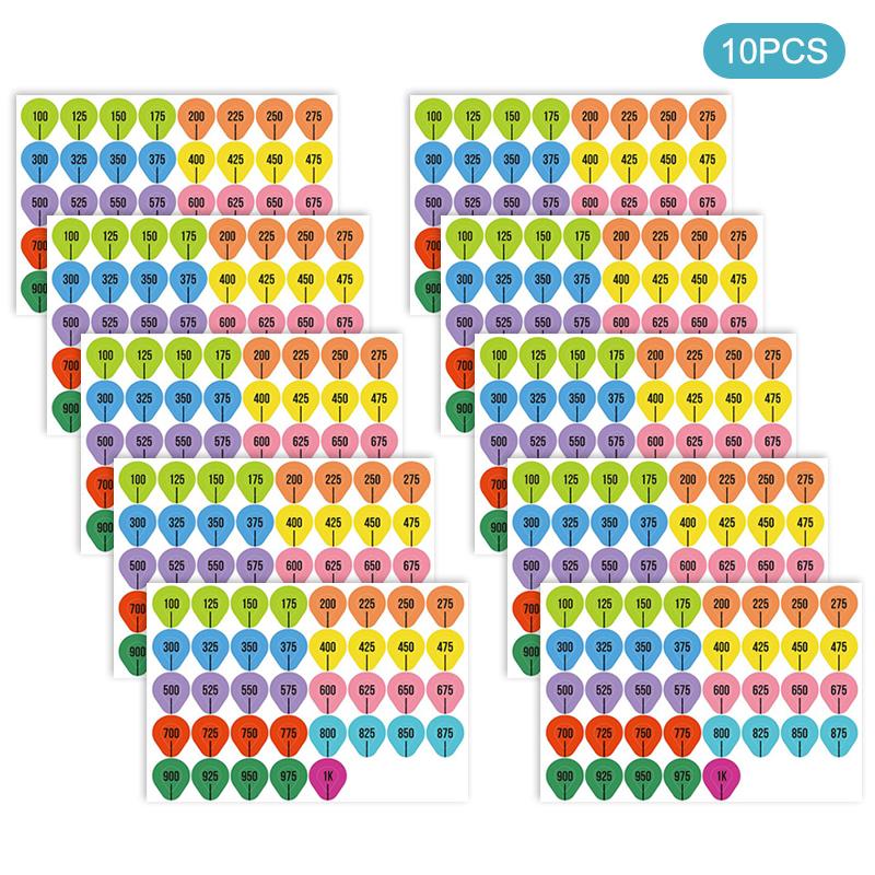 4,Упаковка высокой вместимости на 5/10 листов:Каждый заказ включает 8 листов, содержащих в общей сложности 296 цветных этикеток, с шагом 25 единиц, от 100 до 1000 ярдов.. Цветовая кодировка обеспечивает удобство чтения и быстрый поиск, что делает её идеальной для динамичных съёмочных ситуаций.