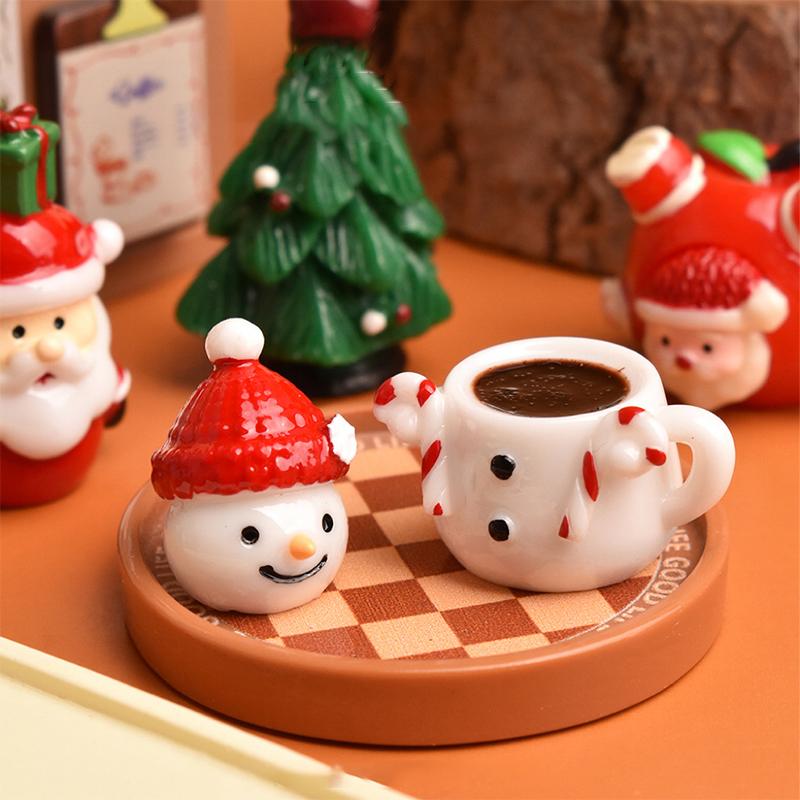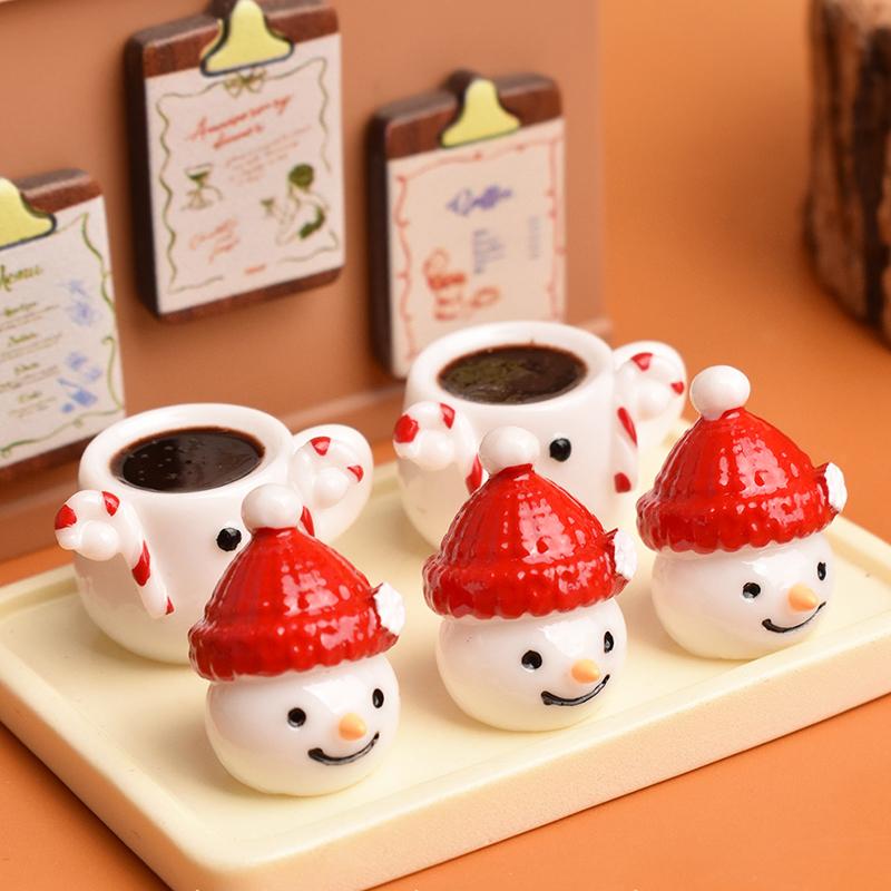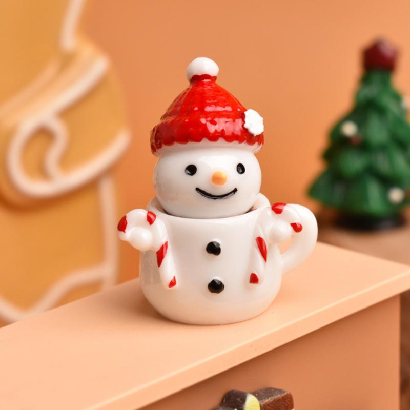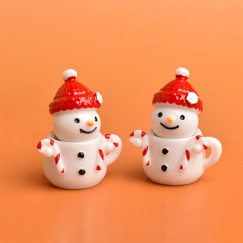 2/5 Набор Мини Снеговик Чашка Украшение Миниатюрная Рождественская Чашка Сцена Пейзаж Смола Кукольный домик Аксессуары Рождественские Поделки Подарки