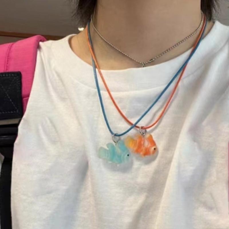 Geometry Clownfish Aesthetic Necklace Fashion Simple Clavicle Chain Women Girls Wax Line Necklace Party Birthday Gift
