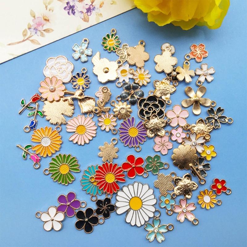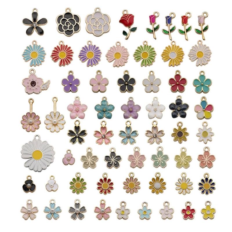 Набор из 60 подвесок-шармов в виде цветов, DIY, с масляной эмалью, материалы для изготовления ювелирных изделий, сплав, идеально подходят для серег и ожерелий