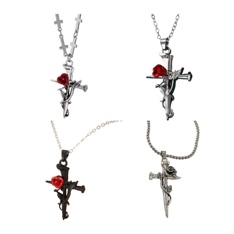 1 шт. Ожерелье с подвеской в виде креста с розой