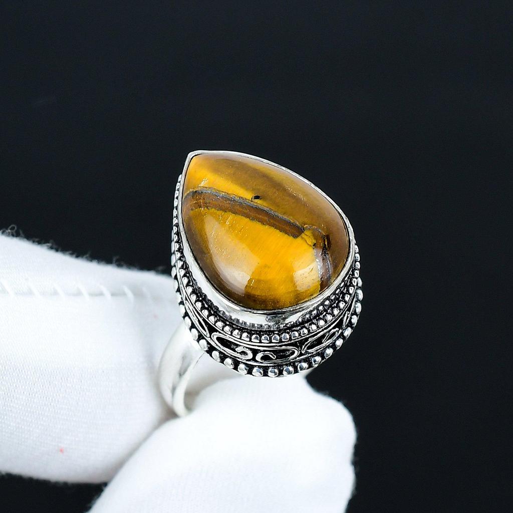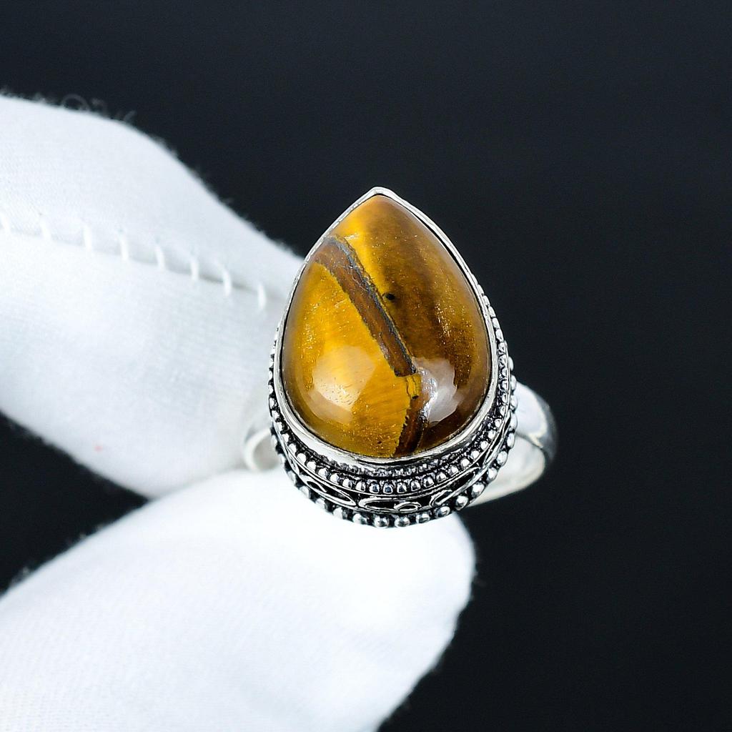 Кольцо из натурального тигрового глаза ручной работы из серебра 925 пробы с регулировкой длины