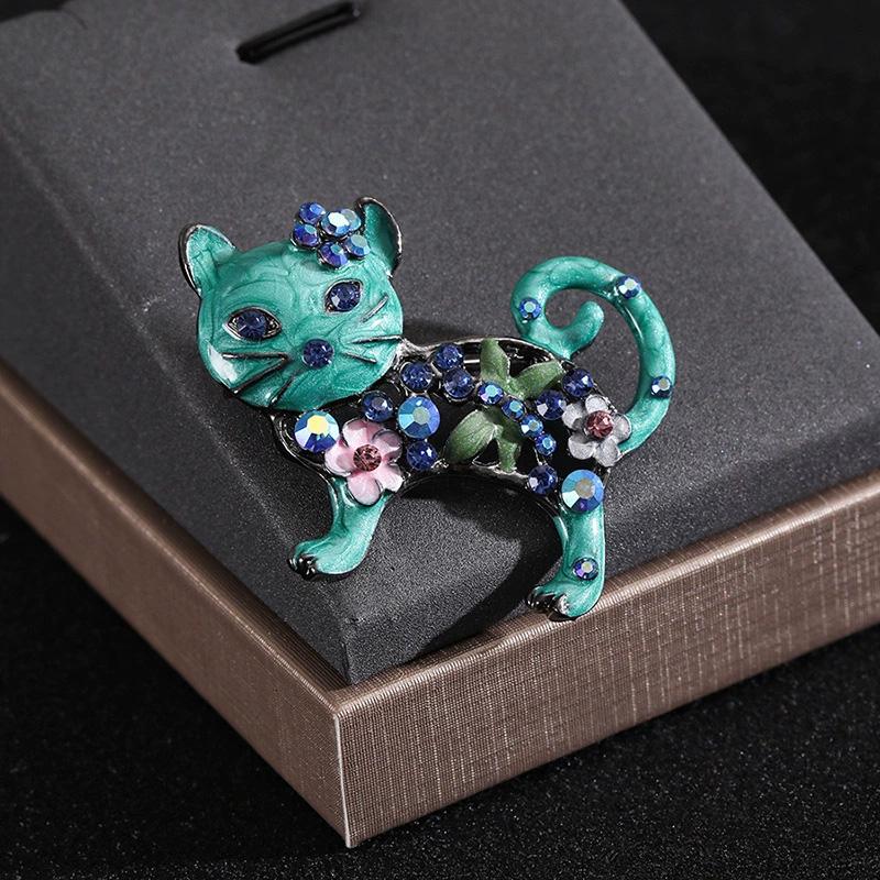 1 шт. Металлическая женская эмалевая повседневная брошь-булавка в виде цветка и животного, подарки, броши со стразами, броши в виде кошек