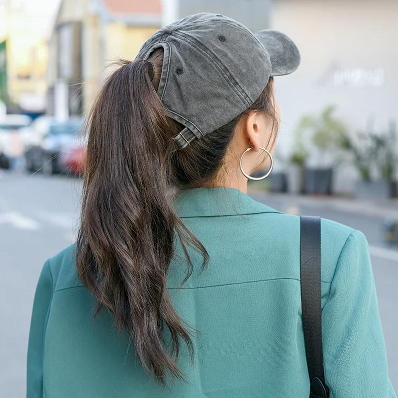 1 шт. Женский топ из мягкого хлопка с перекрещенными вырезами, простой, выстиранный, шапка для высокого хвостика, бейсболка