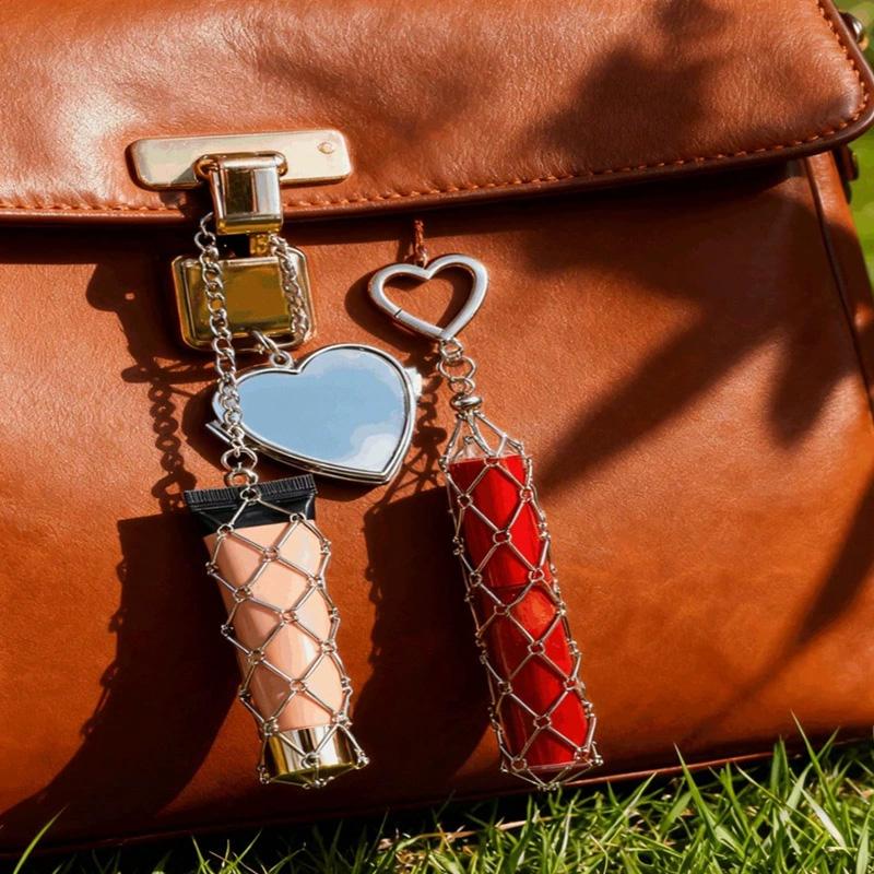 1 шт. Брелок Сменный сетчатый карман Сумка для бальзама для губ Подвеска для ключей Аксессуары для сумки Сумка для губной помады из нержавеющей стали