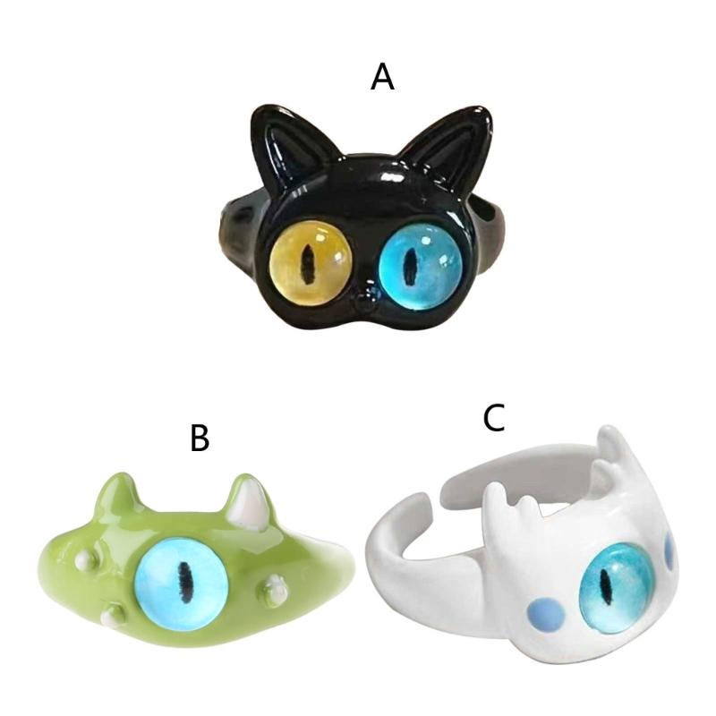 Забавное кольцо-монстр с кошкой черного, зеленого и белого цвета, с большими глазами, милое, крутое, мультяшное, для подруг, парное, открытое, подарок, ювелирное украшение