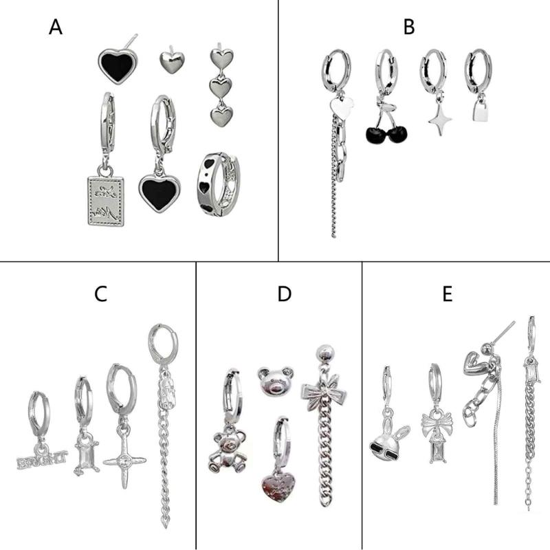 Набор сережек в стиле панк: Персонализированное сердце, вишня, циркон, медведь, кролик, серьги, зажим для ушей, заставит вас выглядеть круто и подчеркнет ваше очаровательное очарование. если вы любитель колец панка или винтажной готики, это будет ваш первый выбор!