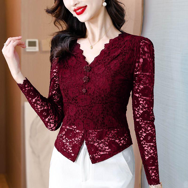 Темпераментная блузка с V-образным вырезом и короткими рукавами, кружевная, модный ажурный топ для женщин на лето, новая приталенная и универсальная блузка — купить товар онлайн с бесплатной доставкой по всему миру!