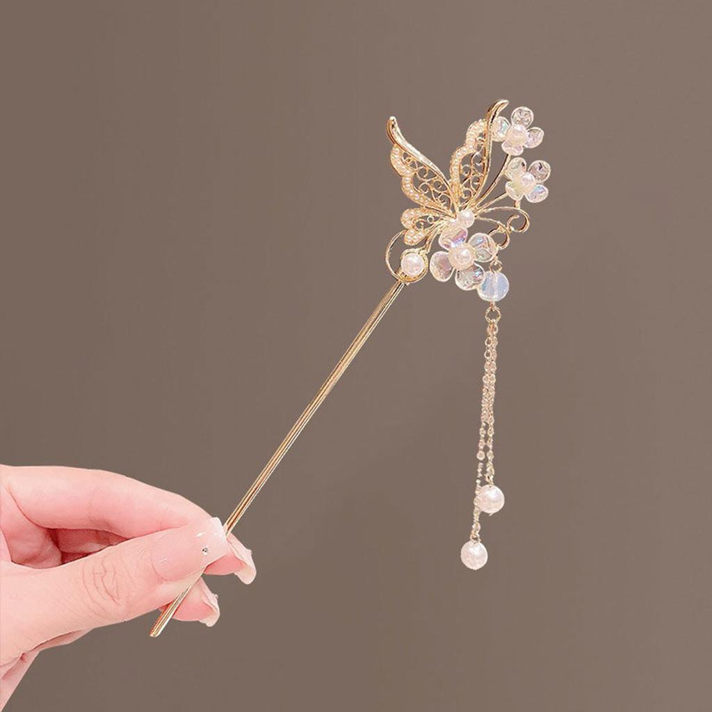 Ретро китайский стиль заколка для волос золотистого цвета сплав бабочка заколки жемчуг цепочка кулон головные уборы женщины девушки украшения для волос