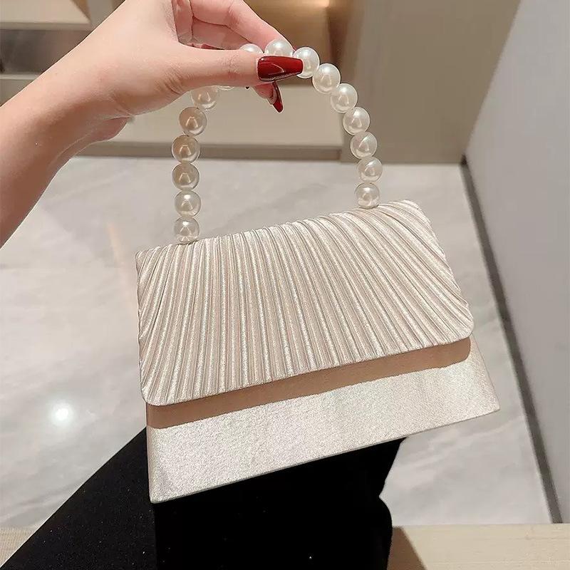 Новая атласная вечерняя сумка с жемчужной ручкой, сумка-конверт, вечерняя сумка для платья, элегантная плиссированная сумка-клатч, маленькая квадратная сумка знаменитости