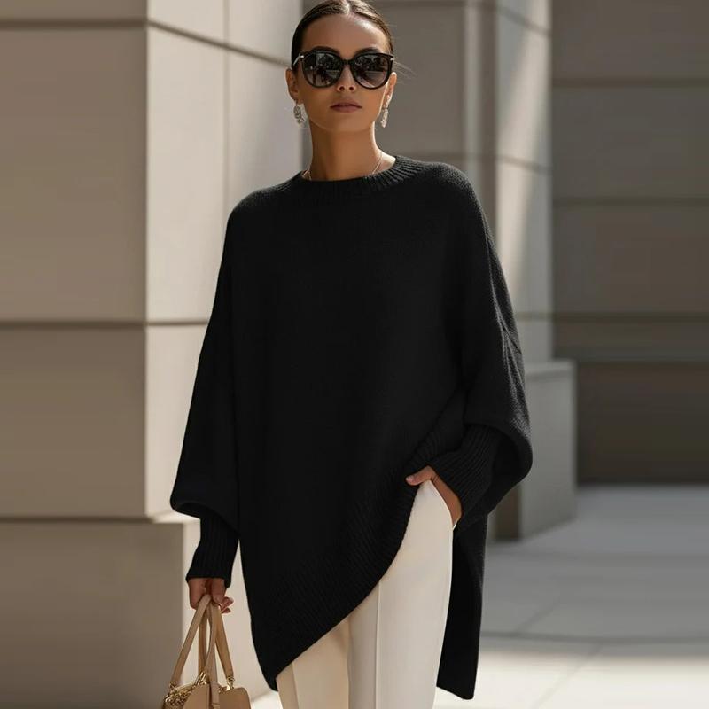Свободный вязаный пуловер с круглым вырезом для осени/зимы