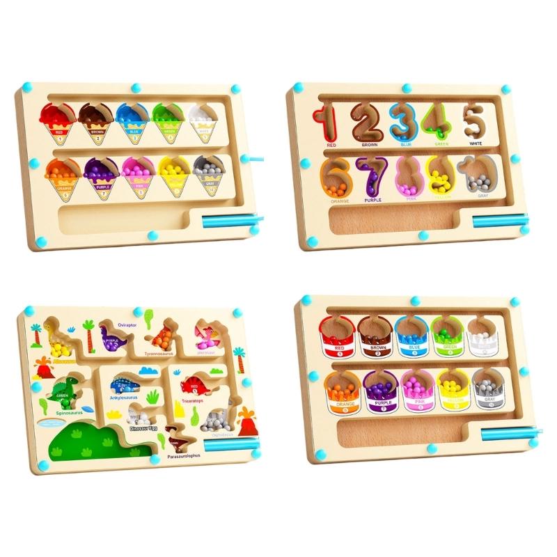 Tracing Number Maze Counting Board Magnetic Counting & Color Sorting Game Educational Wood Maze Toy for Children