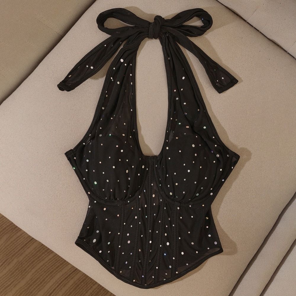 Приталенный корсет со стразами, без рукавов, с вырезом халтер, укороченный топ, элегантная сетчатая хрустальная майка, для вечеринки