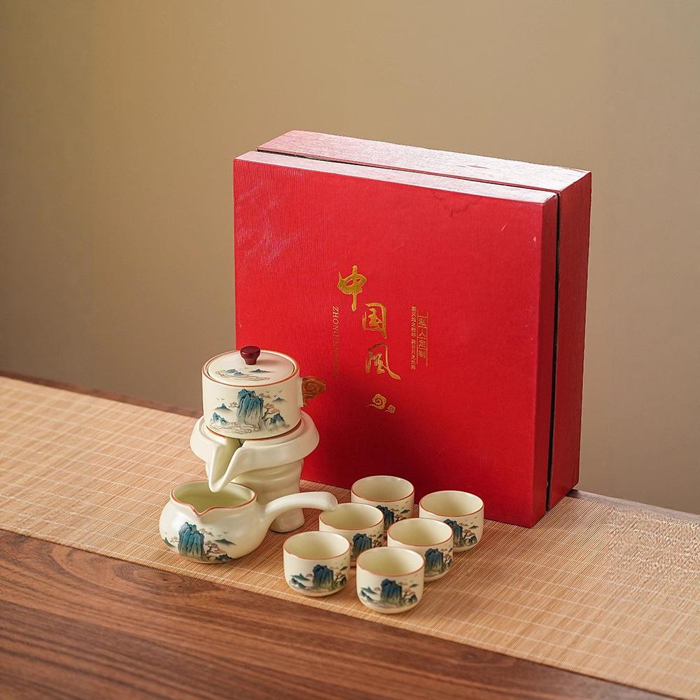 Ручная печь/Великолепные горы и реки Набор для кунг-фу чая Автоматический Бытовой/Простой и портативный Керамический чайник Полный чайный сервиз