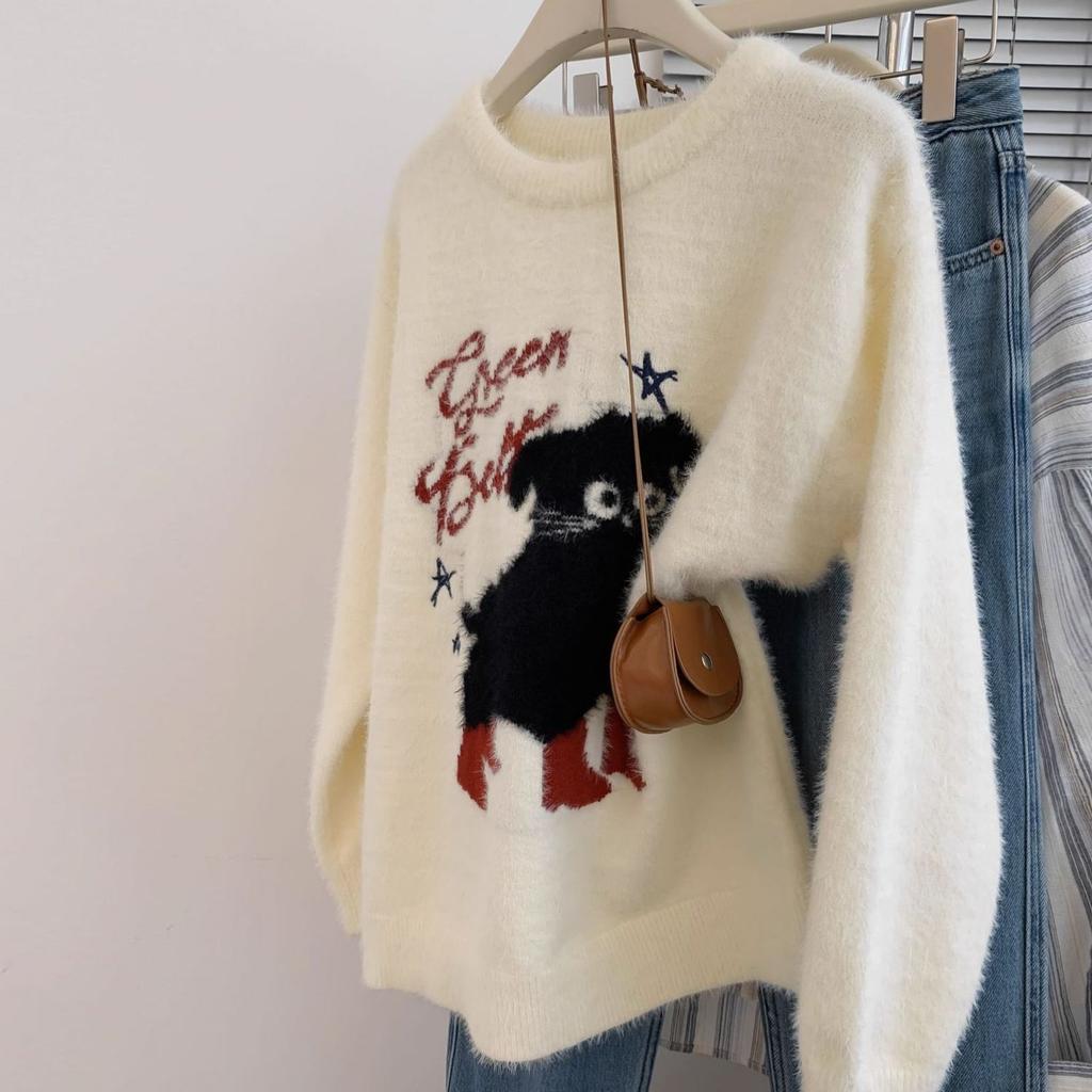 Свитер из жаккардового норкового бархата в стиле колледжа, осень-зима, новый женский корейский свободный базовый свитер