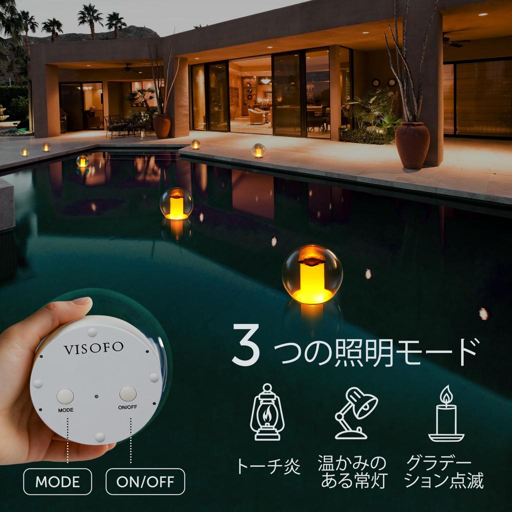 VISOFO Solar Floating Pool Light for Swimming Pools Outdoor Waterproof Decorative Solar Powered Flame LED Lamp, Flickering Recessed Pond Decoration
