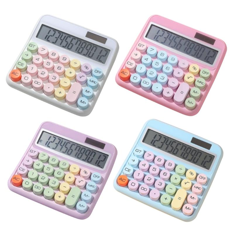 Cute 12 Digit Large LCD Display Calculator Mechanical Switches Calculator with Large LCD Display for Office Work Student