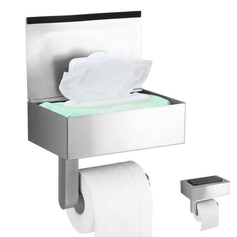 Водонепроницаемая стойка для туалетной бумаги с полкой Нержавеющая сталь Подвесной держатель для бумажных полотенец Спальня