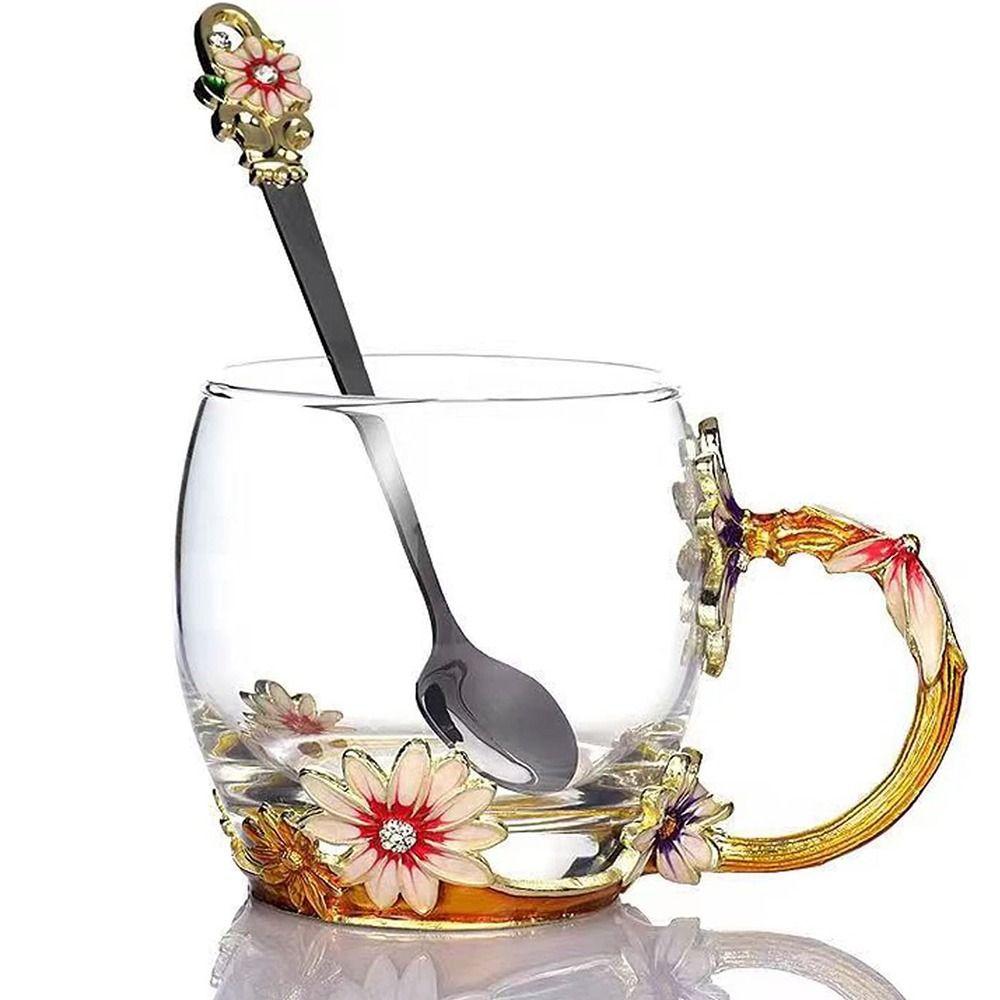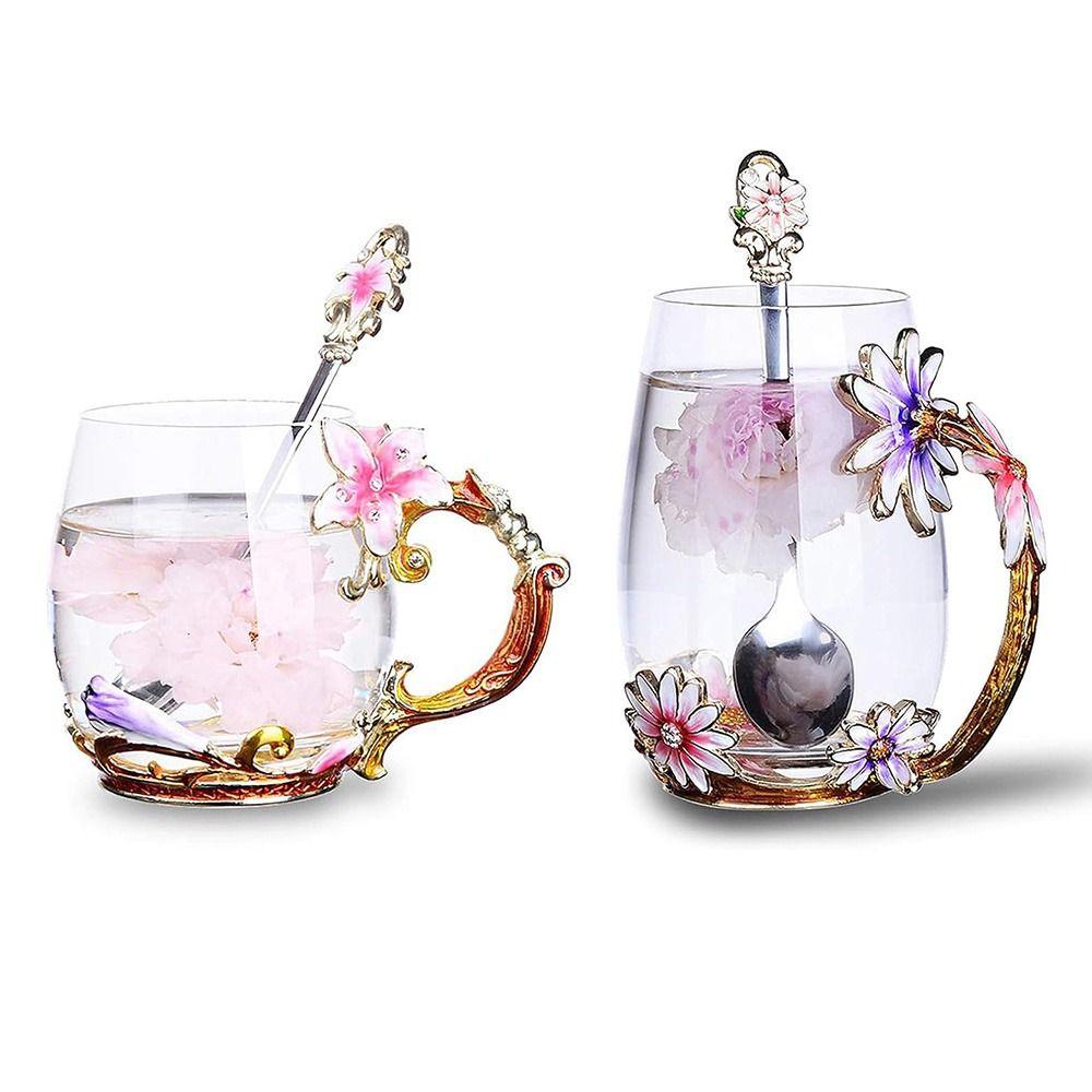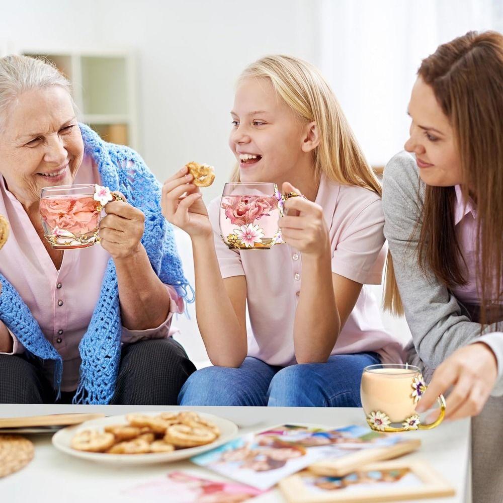 Декоративный цветочный набор чашек для чая: Набор стеклянных чашек имеет универсальный дизайн и винтажный вид. Эти стеклянные чайные чашки для женщин имеют теплый, гостеприимный вид, который улучшает ваш чай, кофе и кофейные кружки для питья, оставляя у вас ощущение расслабленности и вдохновения.