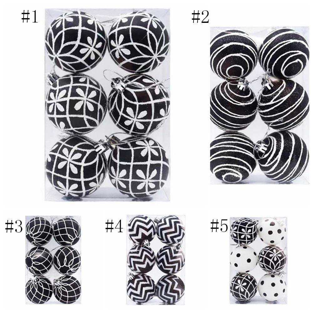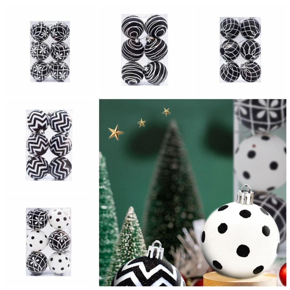 6шт. Небьющиеся рождественские подвесные шары черно-белая рождественская елка декоративная рождественская елка