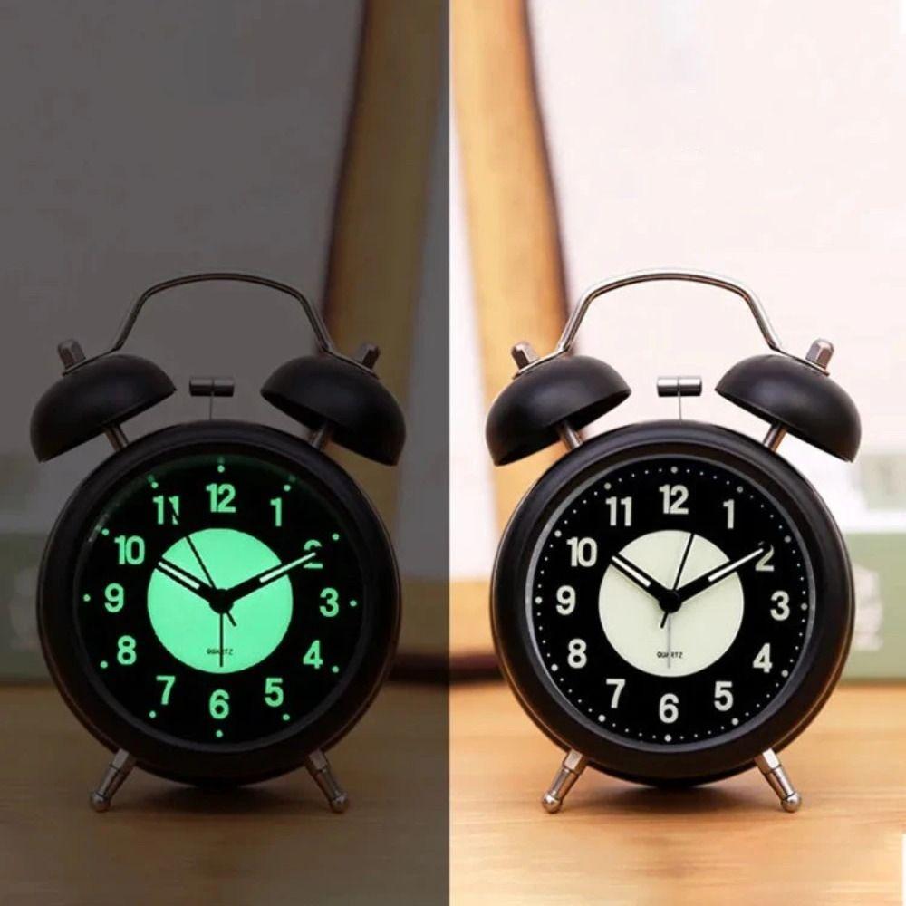 Metal Construction Vintage Silent Alarm Clock Round Pointers Luminous Alarm Clock Student Use