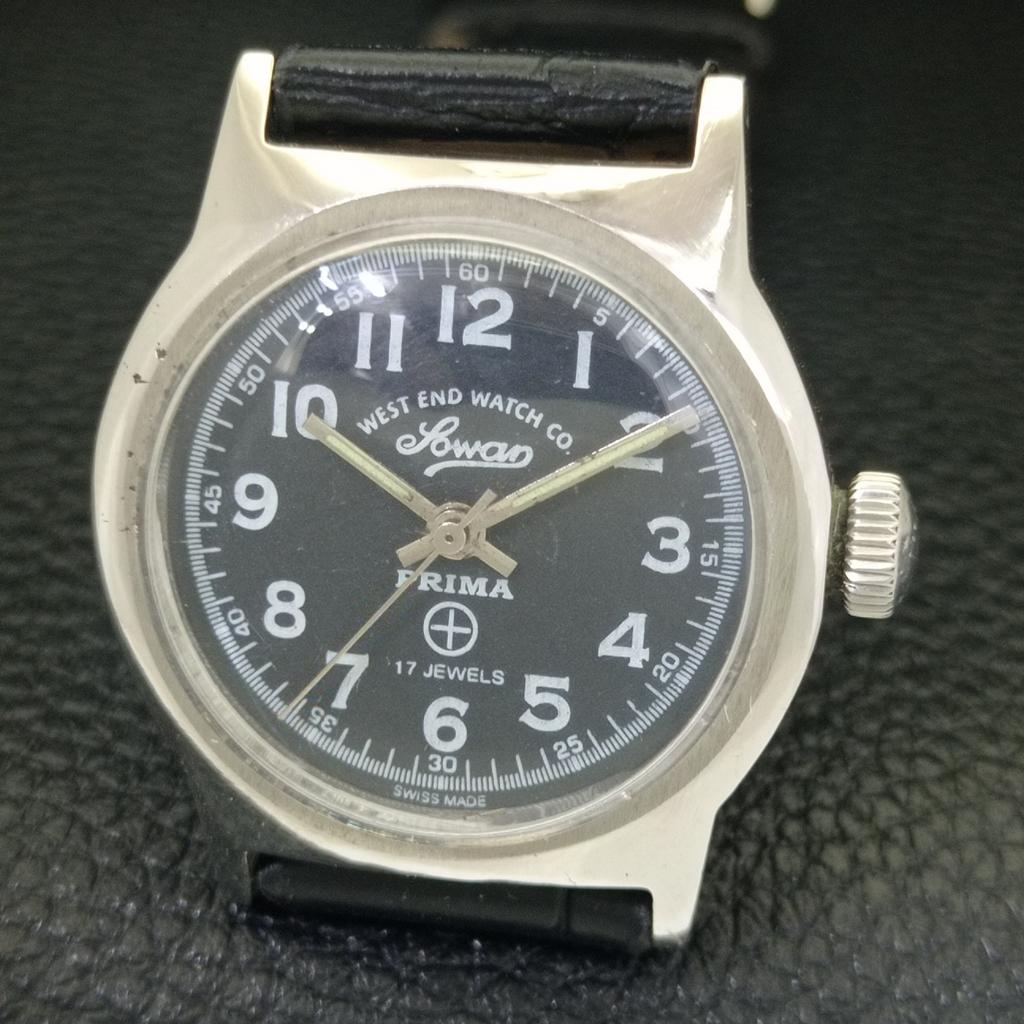 ВИНТАЖНЫЕ ЧАСЫ WEST END WATCH CO С РУЧНЫМ ЗАВОДОМ ШВЕЙЦАРСКИЕ ДЛЯ МАЛЬЧИКА ЧЕРНЫЙ ЦИФЕРБЛАТ a701972-1