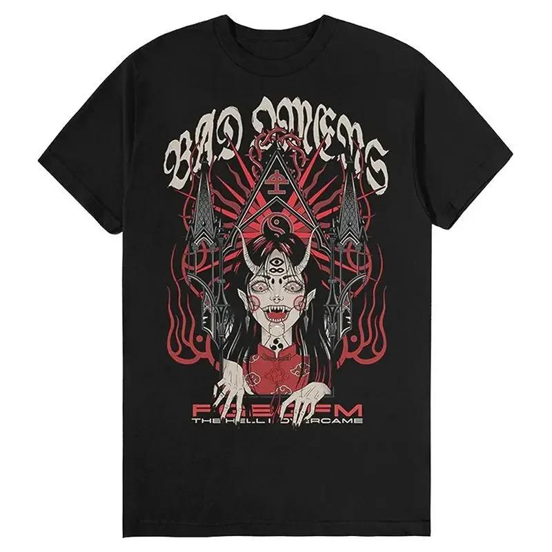 Bad Omen Группа Металкор Рок Американский Винтаж Свободный Повседневный Принт Футболка с Коротким Рукавом Унисекс Летняя Мода Футболка с Круглым Вырезом#Цвет(2)