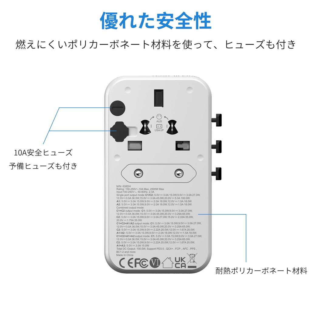 EINNO 100W Fast Charging International Adapter, Worldwide GaN PD 100W Fast Charging, Compatible with PCs, CBFAO Type, International Outlet Converter,