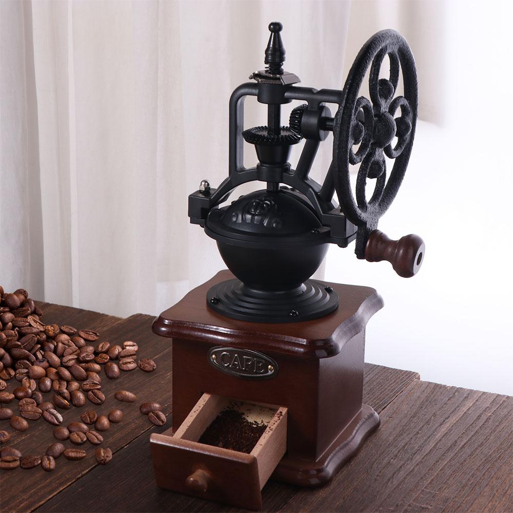 Ручная винтажная кофемолка для кофейных зерен, деревянная кофемолка, кофейная мельница с жерновами, подарок