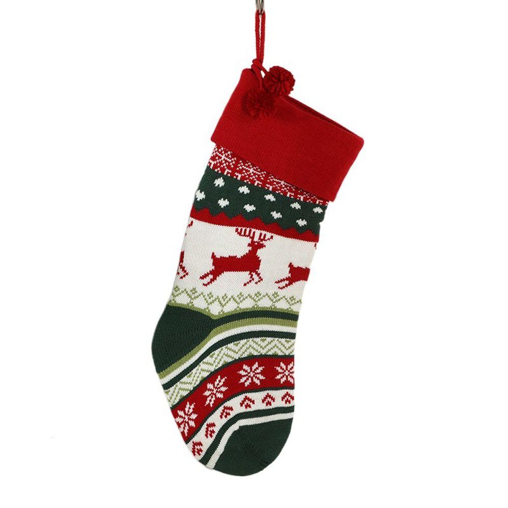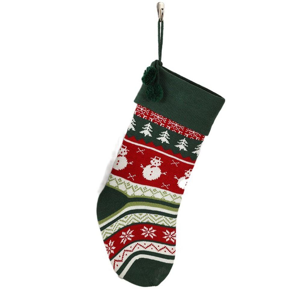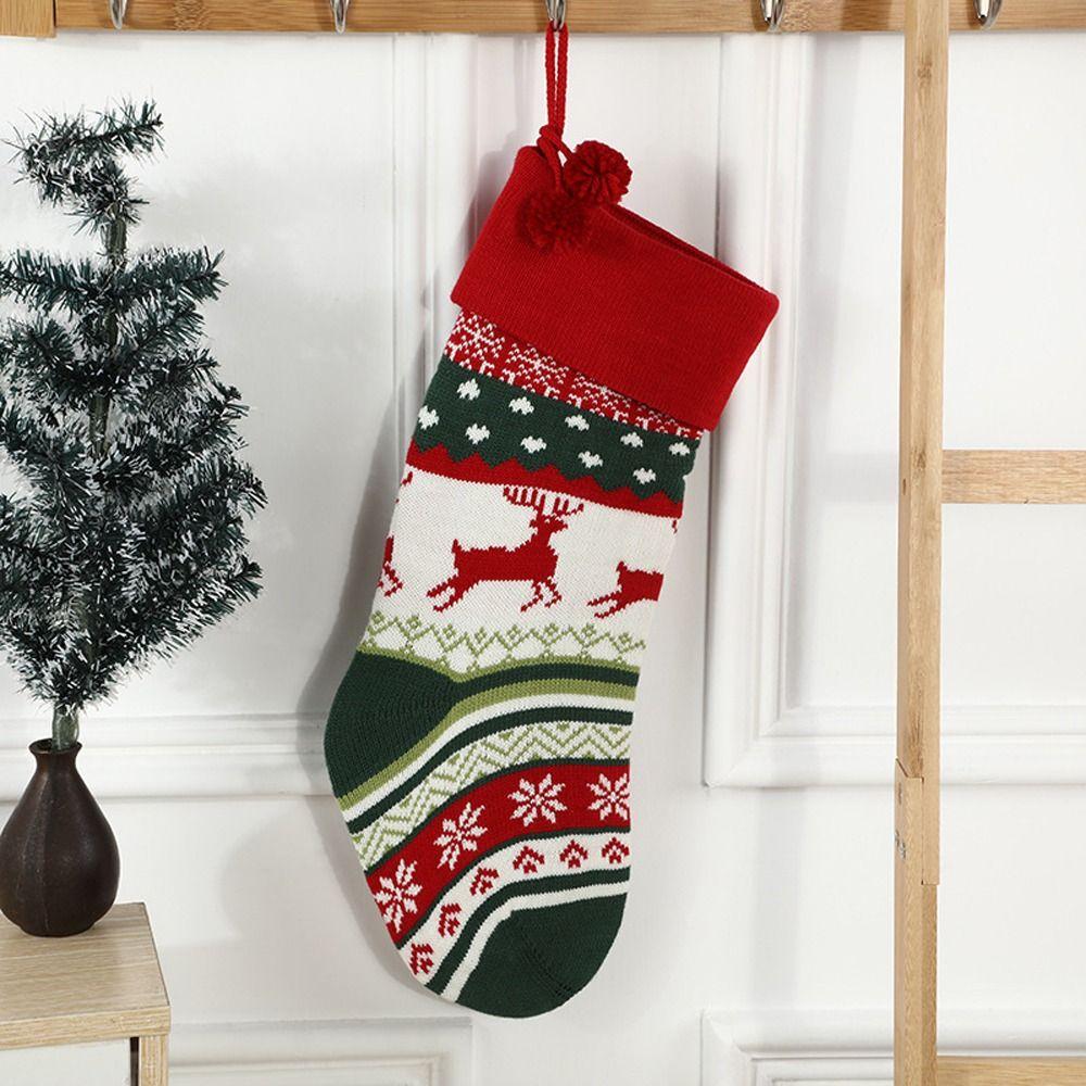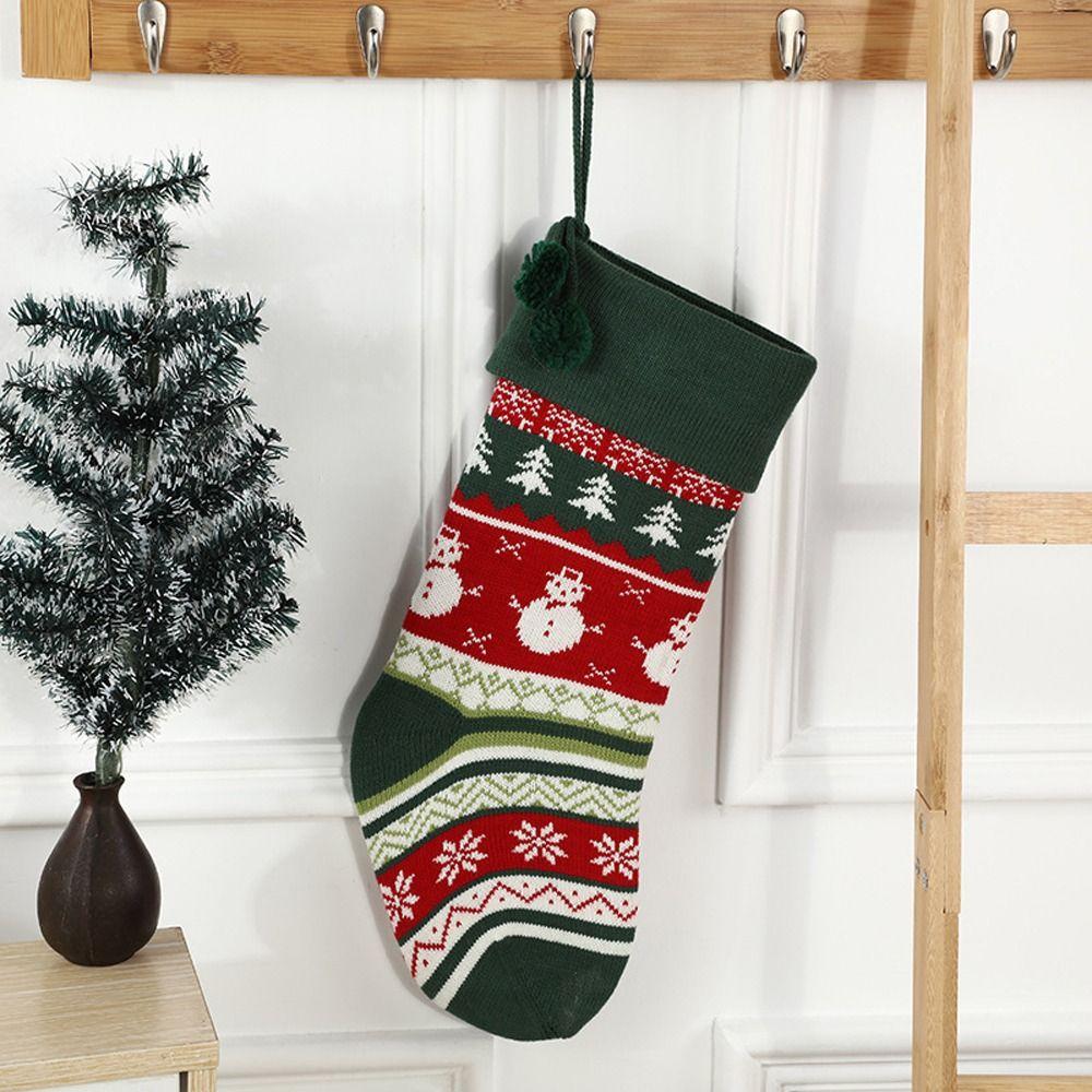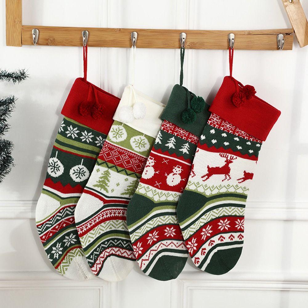 Bag Christmas Gift Xmas Ornament with Pompoms Santa Claus Sock Knitted Christmas Stocking Gift Bag