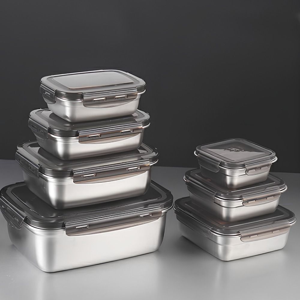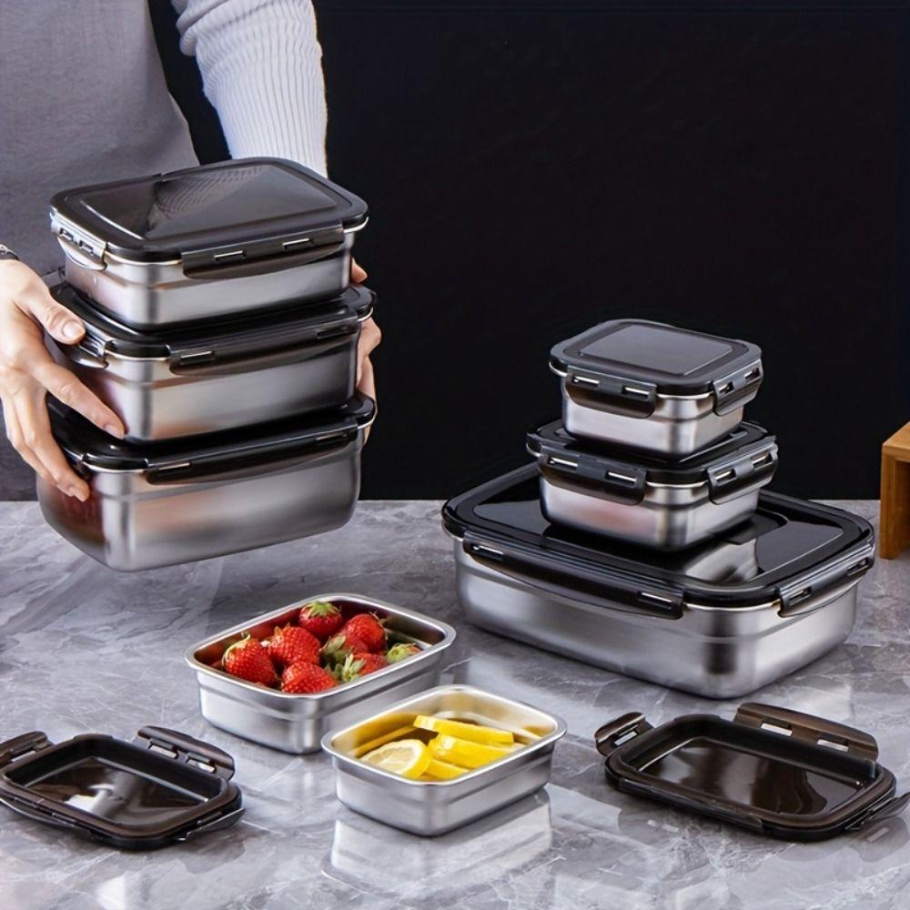Герметичный ланч-бокс из нержавеющей стали Прямоугольный контейнер для заморозки Контейнер для хранения свежих продуктов Кухонное хранение