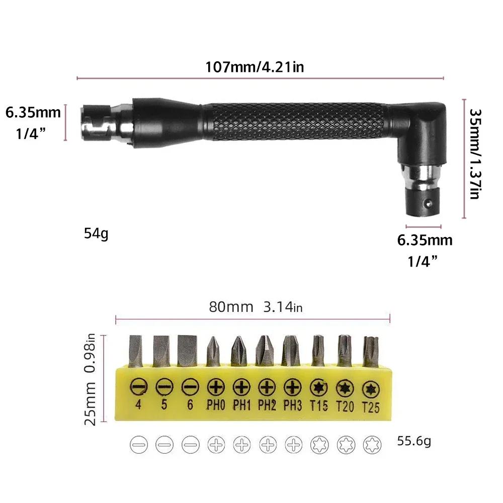 Черный гаечный ключ Мини Двусторонний L-образный 1/4 Шестигранная отверточная бита 90° Двусторонняя рукоятка 6,35 мм Гаечный инструмент Ремонтная рукоятка Автомобильный инструмент