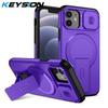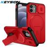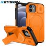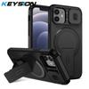 KEYSION Противоударный магнитный чехол для iPhone 11 12 Pro Max Сдвижная защита объектива камеры Подставка Беспроводная зарядка Задняя крышка телефона