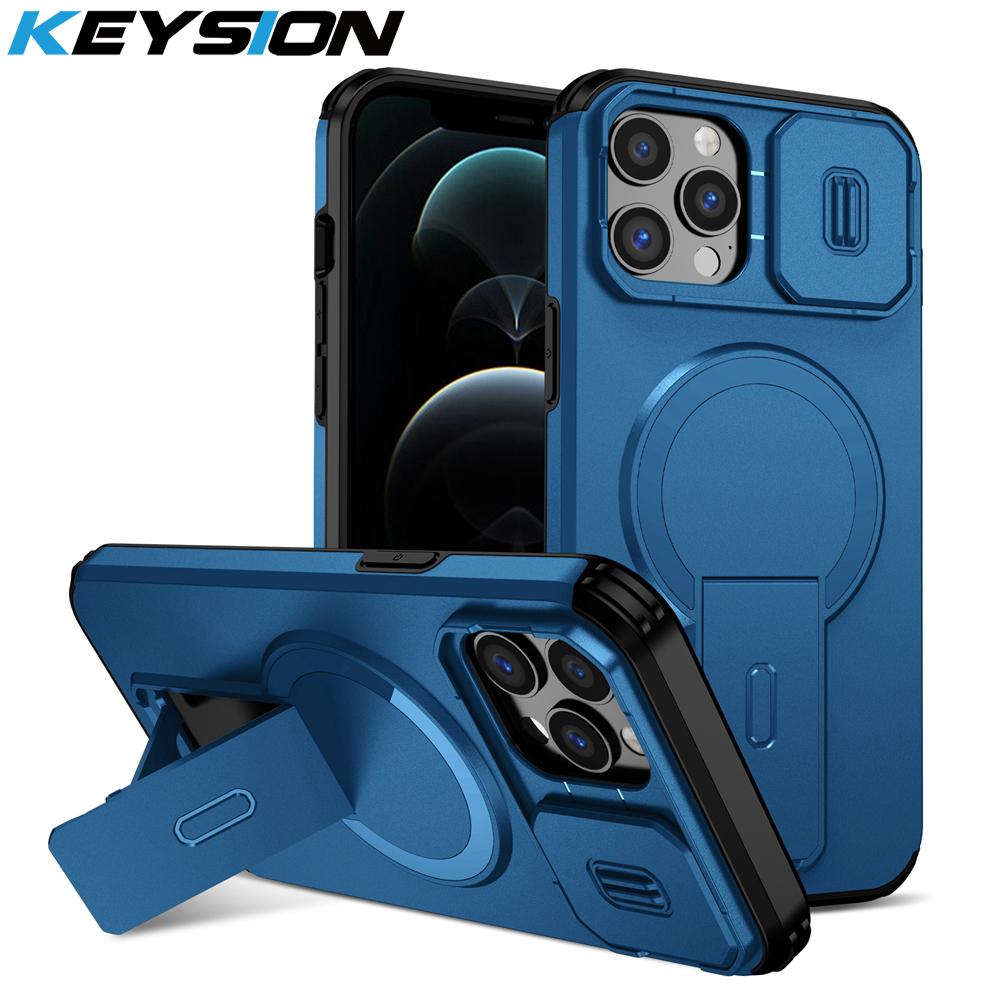 KEYSION Противоударный магнитный чехол для iPhone 11 12 Pro Max Сдвижная защита объектива камеры Подставка Беспроводная зарядка Задняя крышка телефона — купить товар онлайн с бесплатной доставкой по всему миру!