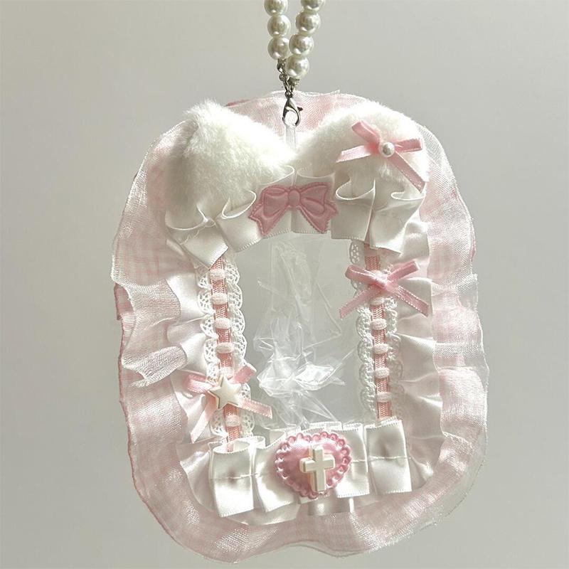 Kawaii Kpop Photocard Holder With Bow Lace Photo Card Protector Idol Photo Display Case Sweet Lolita Style Photocard Case Gifts