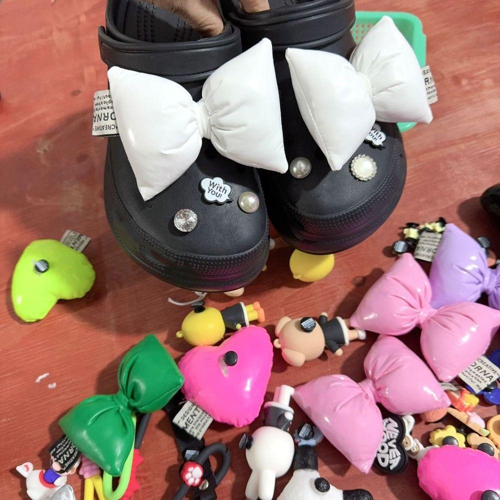 Милые универсальные шармы для обуви для Crocs DIY Конфетные цвета Бант Съемная пряжка для обуви Декоративные аксессуары Женские Детские Подарки
