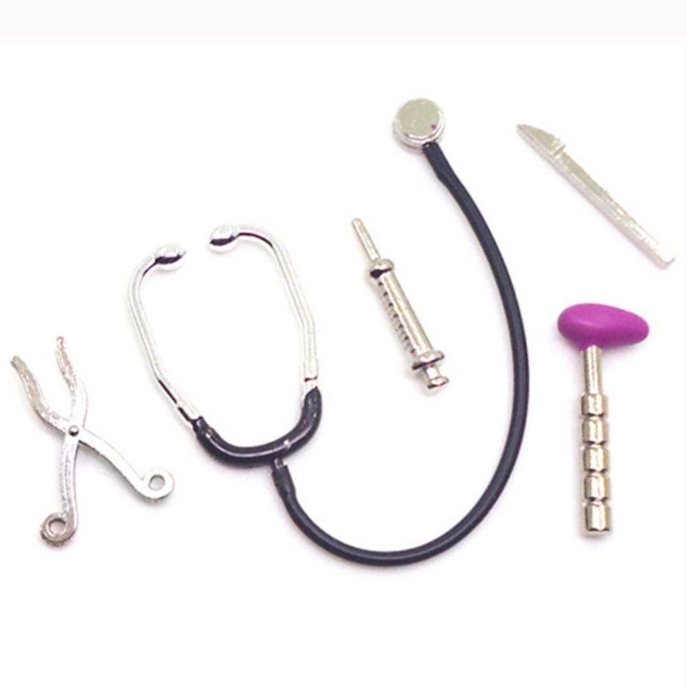 Набор стетоскопов для кукольного домика масштаба 1/6 1/12, аксессуары для кукол врача и медсестры, миниатюрные медицинские приборы, детская игрушка, сплав