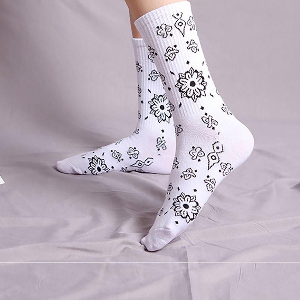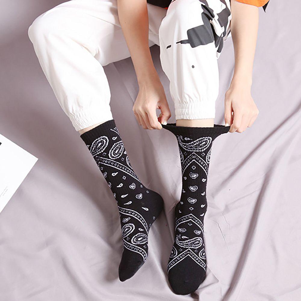 Хлопковые уличные мужские спортивные носки с цветочным узором пейсли, носки средней длины, носки в корейском стиле, женский трикотаж