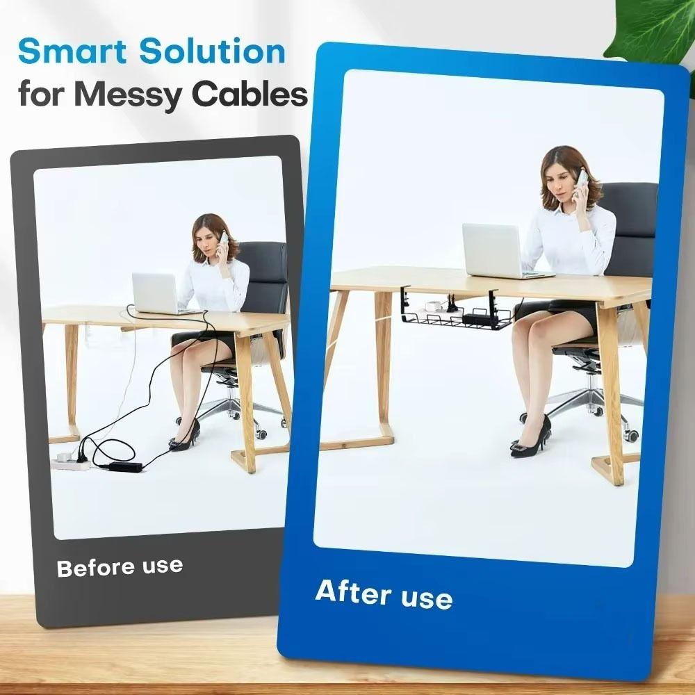 Sturdy Metal Cable Management Tray No Punching Desk Wire Organizer Under Table Storage Rack Office