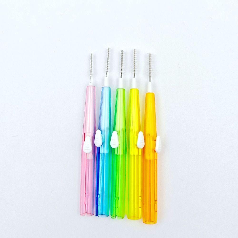 60 Pcs Push-pull Toothpicks I-shape Toothbrush PE Oral Cleaning Tools Oral Cleaning
