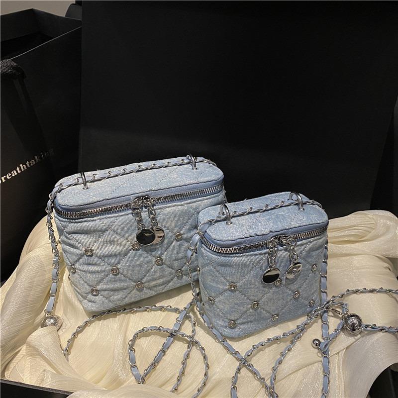 Новая джинсовая ромбовидная сумка-бокс на цепочке, темпераментная универсальная сумка через плечо, модная универсальная маленькая сумка