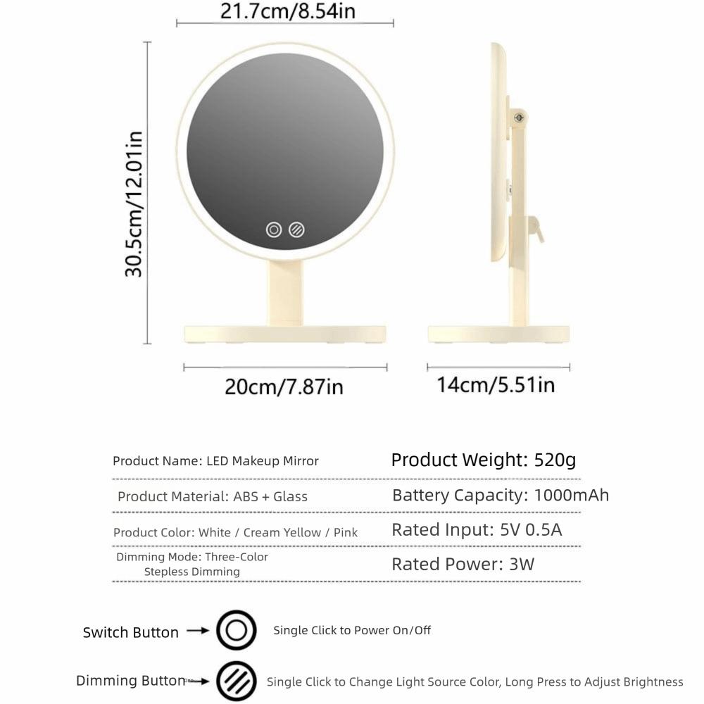Трехцветный свет Дневной свет Косметическое зеркало с подсветкой Съемное Регулируемое настольное зеркало