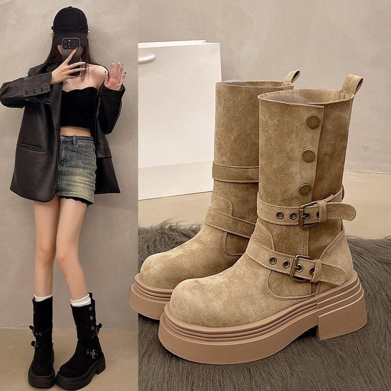 Модные короткие ботинки, Новые ретро ботинки на толстой подошве, Женская обувь