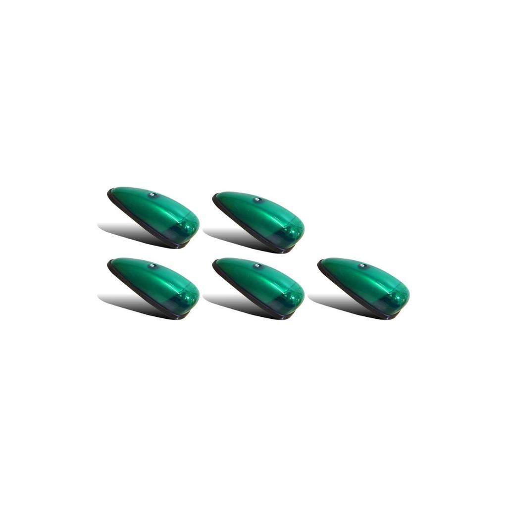 5x Green teardrop marker lights Top Roof Running Lights style Waterproof Decoration Marker Lights with 12v Bulbs for Heavy Duty Truck Kenworth