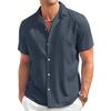Мужская модная рубашка с воротником, однотонная, с коротким рукавом, из хлопка и льна, на пуговицах, повседневный топ