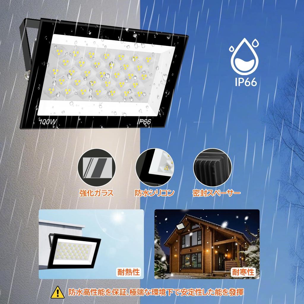 Светодиодный прожектор 100 Вт 12000 лм, водонепроницаемый IP66, дневной белый, 6500 К, для использования в помещении/на улице, совместимый со 100 В, высокая яркость, высокая цветопередача (Ra85